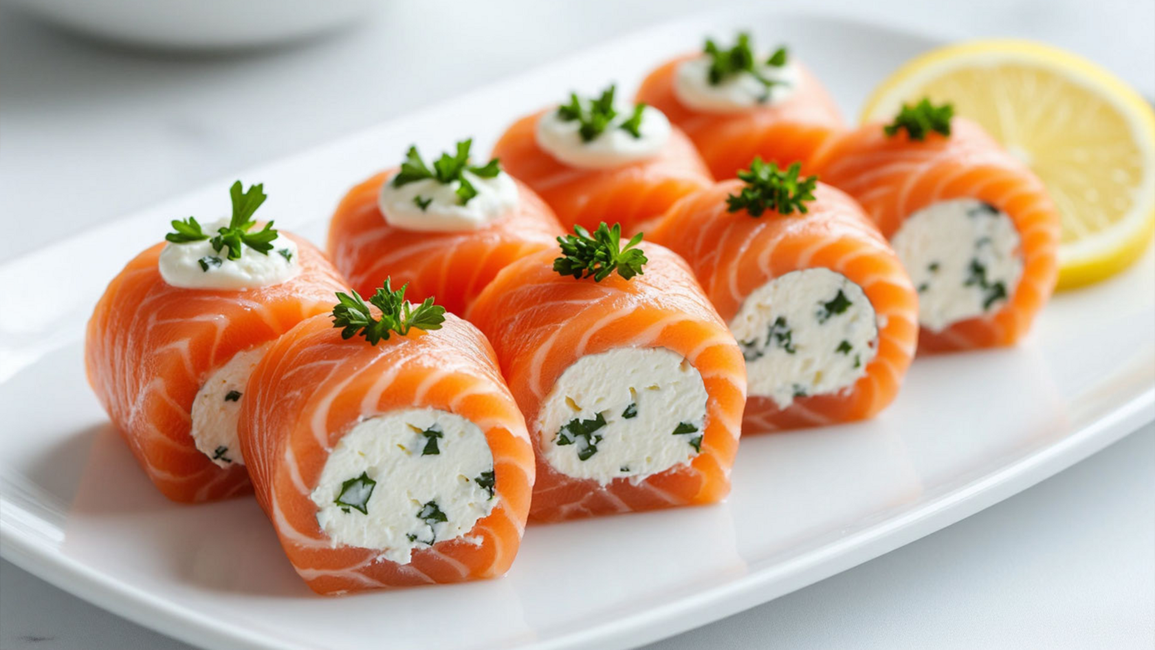 После охлаждения нарезать рулетиками, перед подачей украсить долькой лимона.